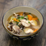 Gently add the bass fish pieces to the soup, spacing them evenly to avoid overcrowding. Let the fish poach in the hot broth for 3 to 5 minutes. When the flesh turns opaque and flakes apart with ease, it’s ready—be cautious not to overcook, as fish can quickly become dry or rubbery.