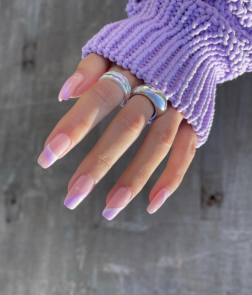 The long nails with their lavender glow are the best way to know about the spring night magic. Dreamlike opalescent polish brings to mind the fantasy of a twilight sky. These nails are made for people who have a dreaming and poetic soul and see the world in such a way that they feel beauty in the night’s gentle descent.