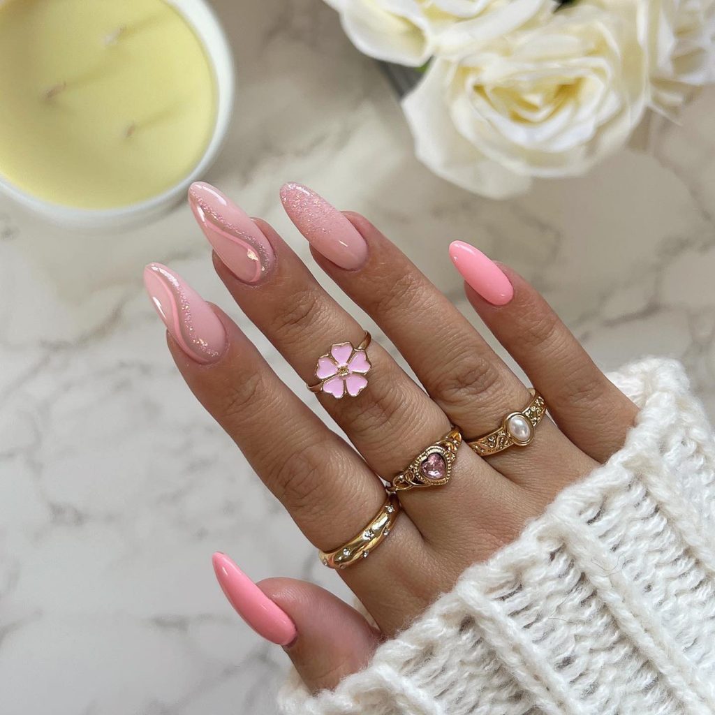 The first reason that came to mind to me is spring is the shiny light on a petal, which is an incredible thing to be on nails. A powder of glitter on a warm pink base creates an everyday thing into something classy. This is a match that goes perfectly well with the rings and bracelets made of diamonds and gold that a person wears on special occasions or just to have some bling in your daily life.