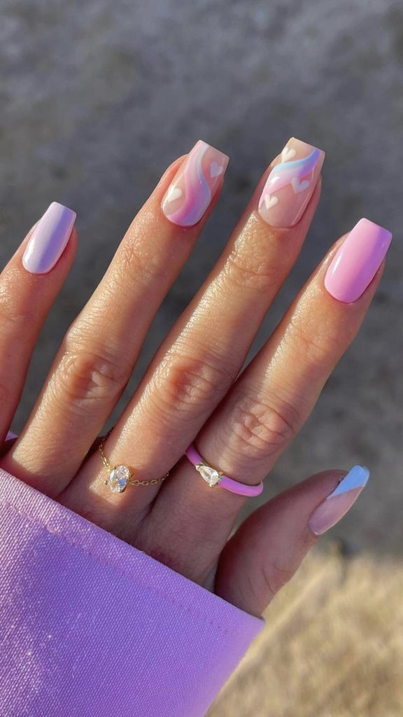 The primary shade is a gentle lilac wherein pastel pinks and whites appear as waves, making a gossamer look that is dreamy and at the same time, sophisticated. This design is perfect for people who enjoy a little bit of fantasy in their personal style; by its beautiful lines and gentle color shifts, it beckons the 3D acrylic nails with a twist.