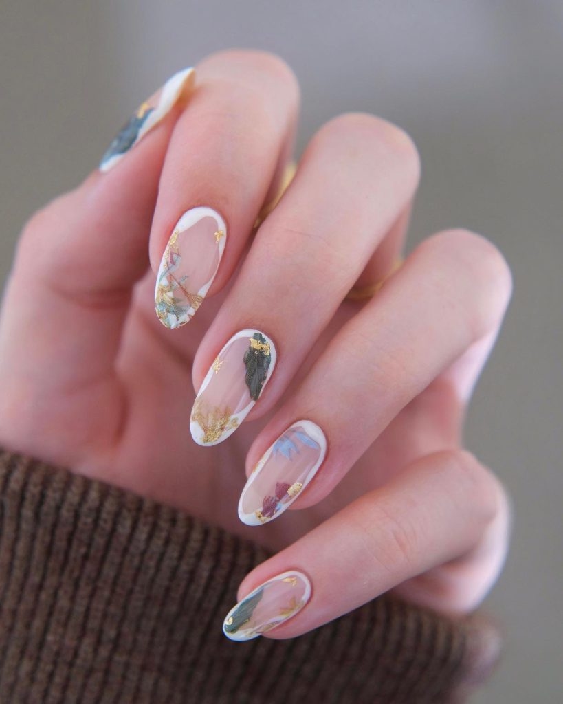 People who adore the idea of having a garden with them everywhere they go, these Natural nails that are slightly clear, but they show intricate designs of flowers to spring in the air of the floral trend. The Squoval form preserves a natural style while the elaborate flowers introduce a chic highlight suitable for all by skin shade spectrum.