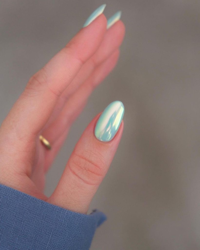 Finally, the Acrylic nails with an opalescent finish truly embody the dreamy vibes of the spring skies. The Almond shape is both elegant and trendy, which makes it the perfect background for the intriguing color shift on the nails. These nails are appropriate to be worn by almost all skin tones and will undoubtedly attract attention at every spring party.