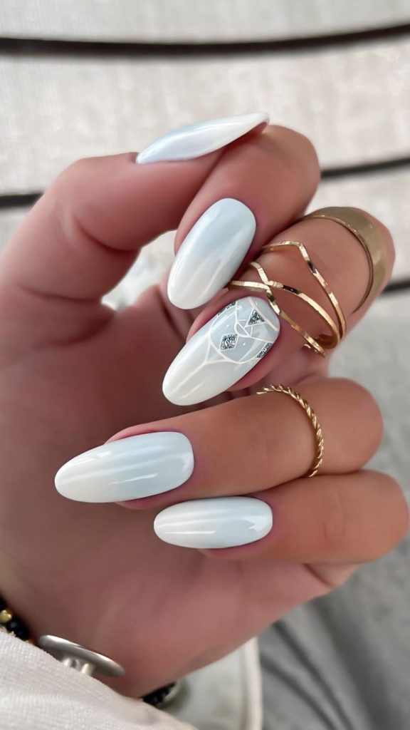 For the minimalist with a love for the celestial, these nails are a subtle nod to the night sky. A clear gradient towards white, accented with a singular star on each nail, encapsulates the peacefulness of a clear spring night.