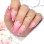 Delicate as the petals of flowers, these pink acrylic nails are a salute to the flowering plants of spring season. The highlight nail, scintillating with the light of rhinestones, brings in the element of finesse, and it is perfectly fit for any spring sequential event or marriage.