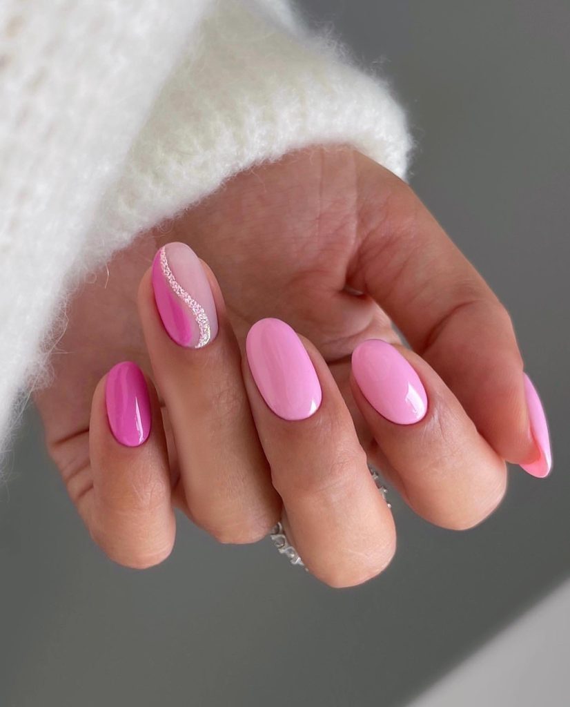 These stylish spring nails demonstrate the hide-and-seek game of soft pastels. They are designed with funky shapes in pink and lavender colors along with a few fluorescent glossy hints and charm of visual effects that light falls on them in the right way. It is a design that is both playful and elegant.