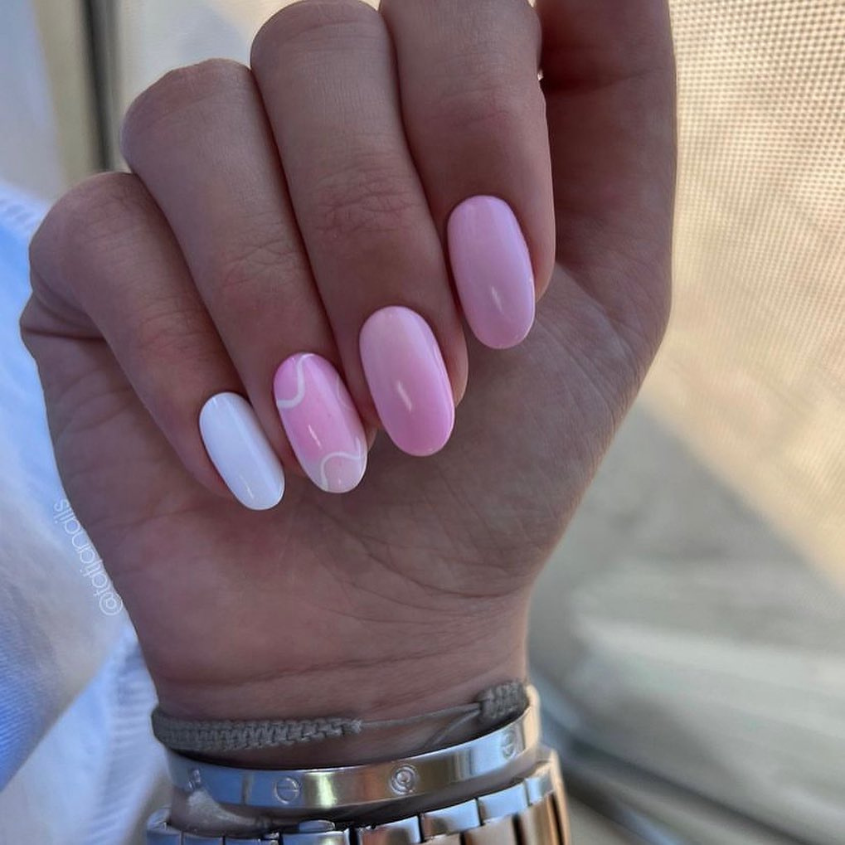 On one occasion, the nails displayed less design show more design and the girl was right about that. The suavely matched delicate pink with a simple decoration of white gave it a minimalist, yet very up-to-date and timeless look,… would she introduce this idea to a woman who is elegant in simplicity?