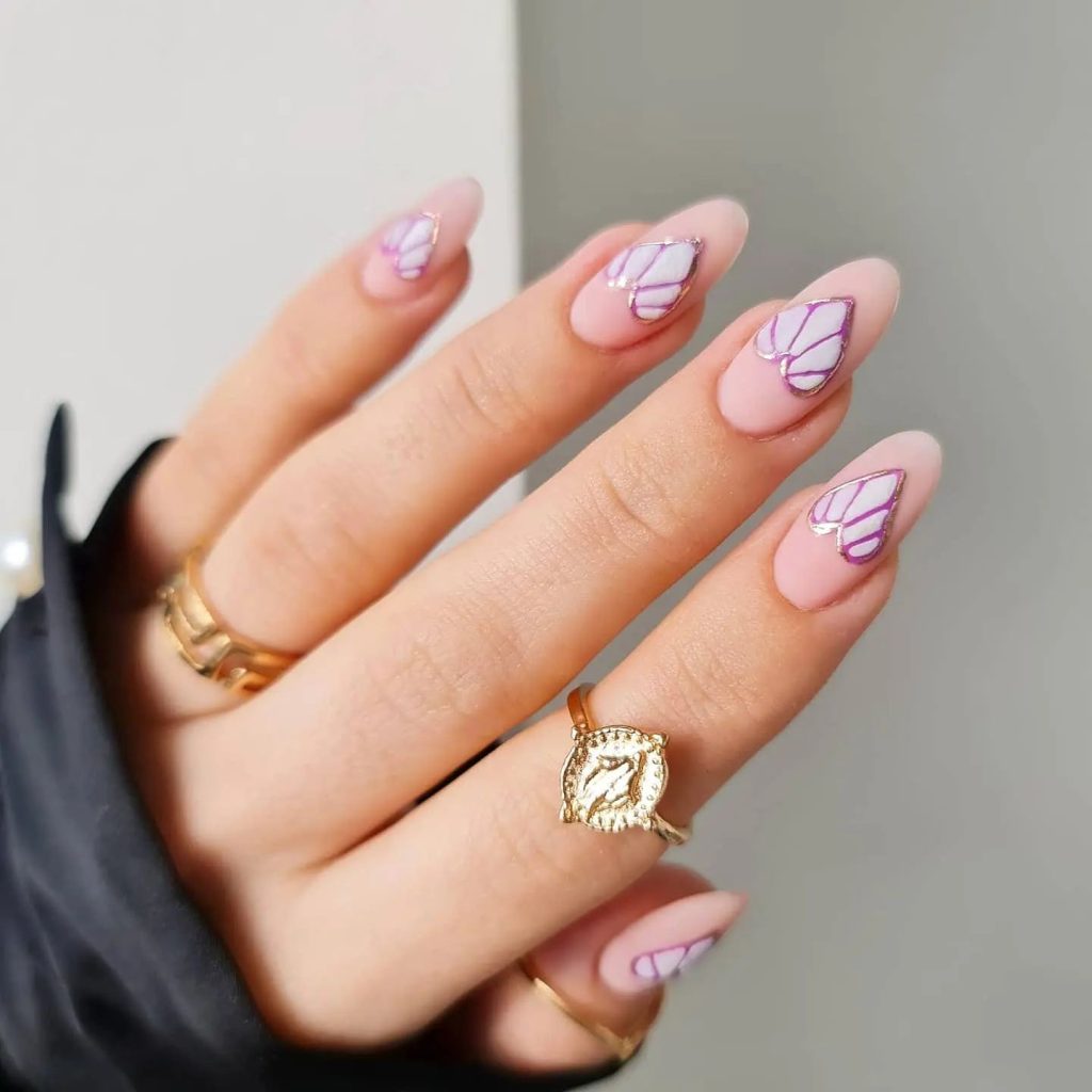 With its swirly, marbled theme and hues of pink with the addition of gold leaf accents, this design demonstrates the creativity that comes with nail art. As if bearing witness to a garden full of budding flowers, this style allows you to experience the sun’s luxurious warmth along with the gold touches. Best suited for a glamorous interior designer coming to a gallery display or an elegant social event, it is a design that fits well with both the bold and the refined parts of a woman’s wardrobe.
