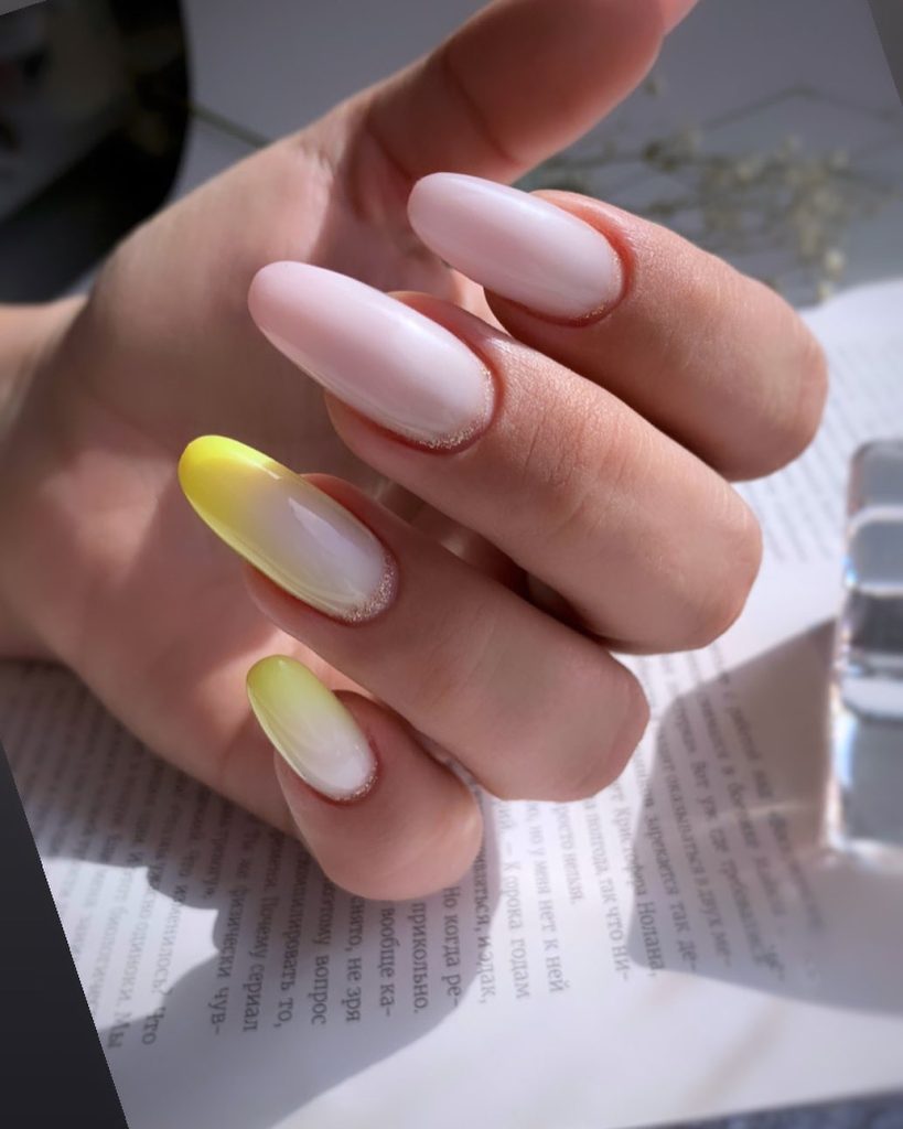This gradient design, which moves from palest pink to bright yellow, represents the soft and gentle dawning of a spring morning. It is a simple but still noticeable way to remind yourself of the good things that are to come and of the warm days that you will be surrounded by. This gel technique is for those who want a distinctive yet simple look that reflects the seasonal weather changes.