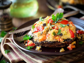 Arrange the stuffed mushrooms on a decorative platter with sprigs of fresh parsley, or serve on skewers for a more accessible, party-friendly presentation.
