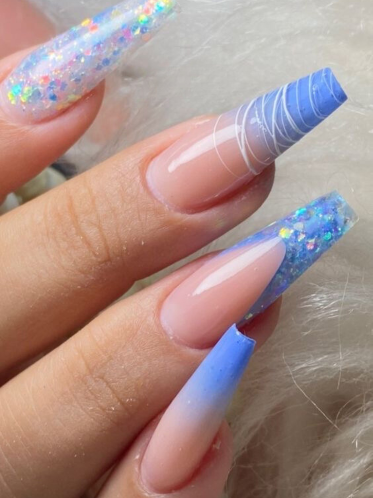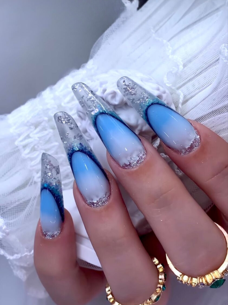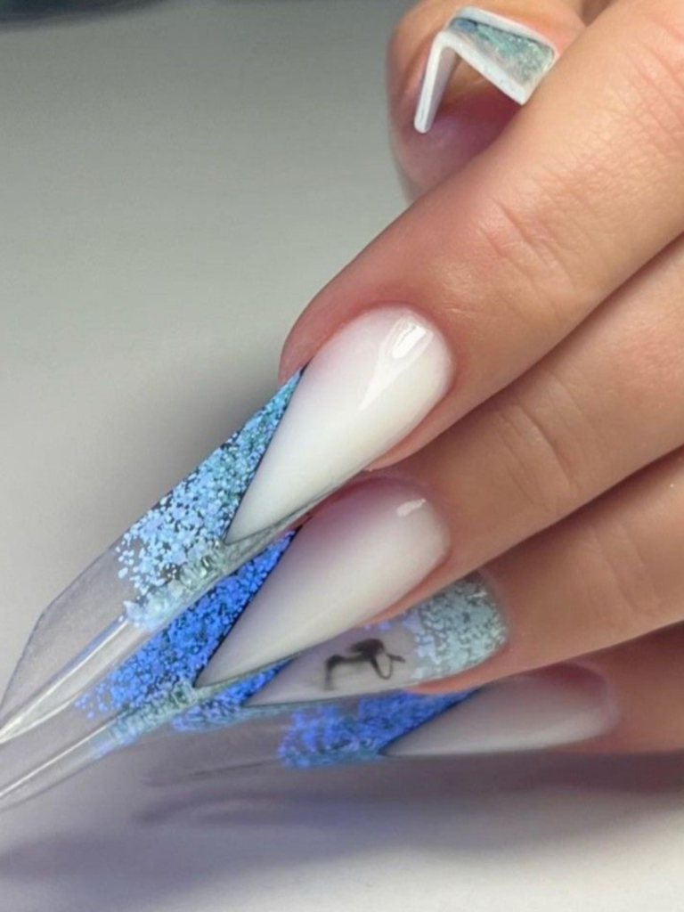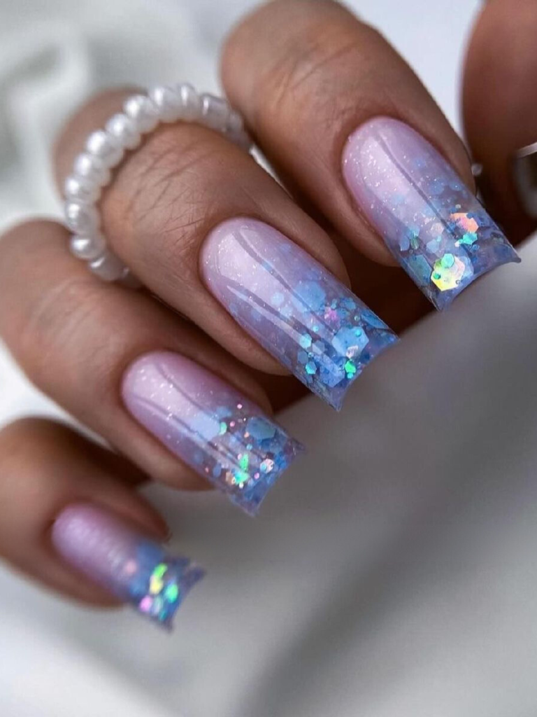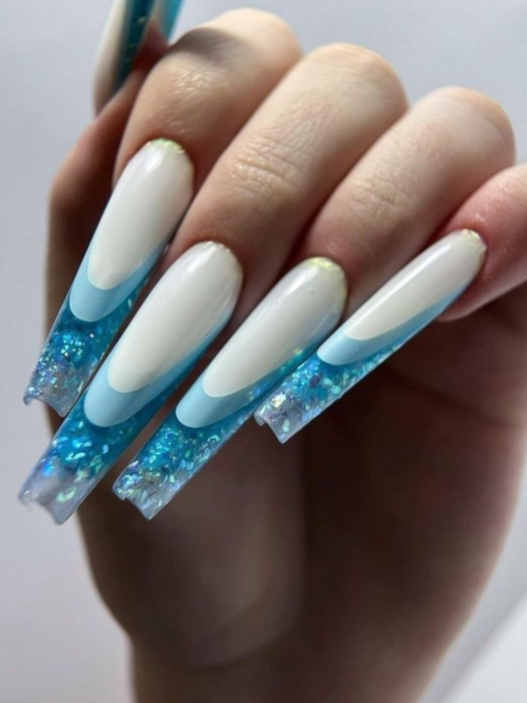 8. Frosty Elegance: White and Blue Glitter Gradient