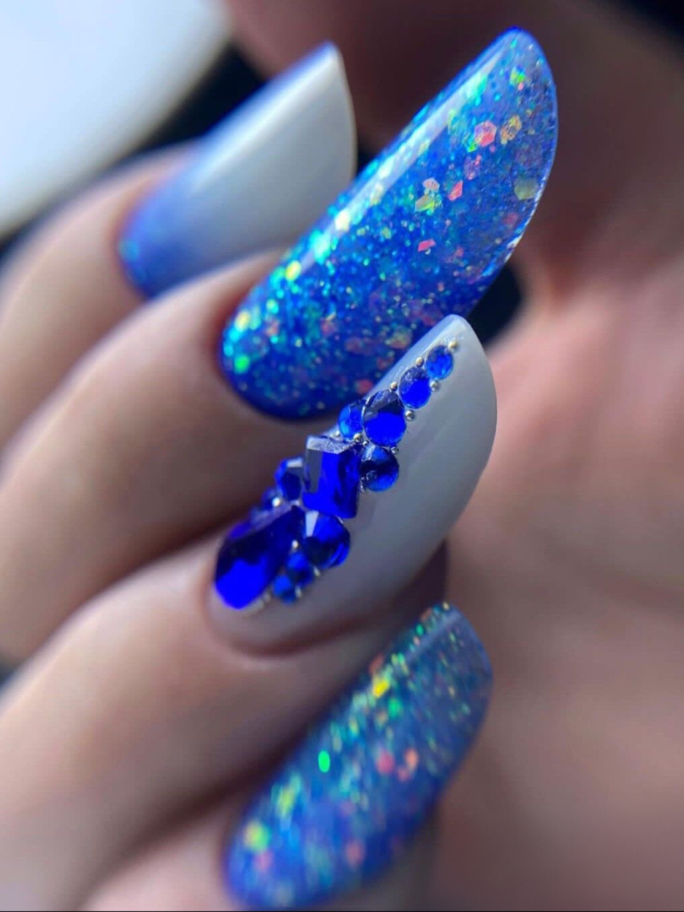 14. Cosmic Sparkle: Vibrant Glitter and Sapphire Embellishments
