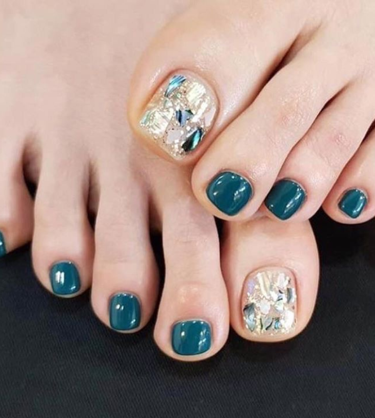 The elegant tone of teal has a relaxing and composed atmosphere that gives you these feet. The easy application and high gloss finish indicate that the person has a passion for the simple pleasures of life. The color is a new lease of life, a calm shade that adds a touch of cool elegance to any outfit.