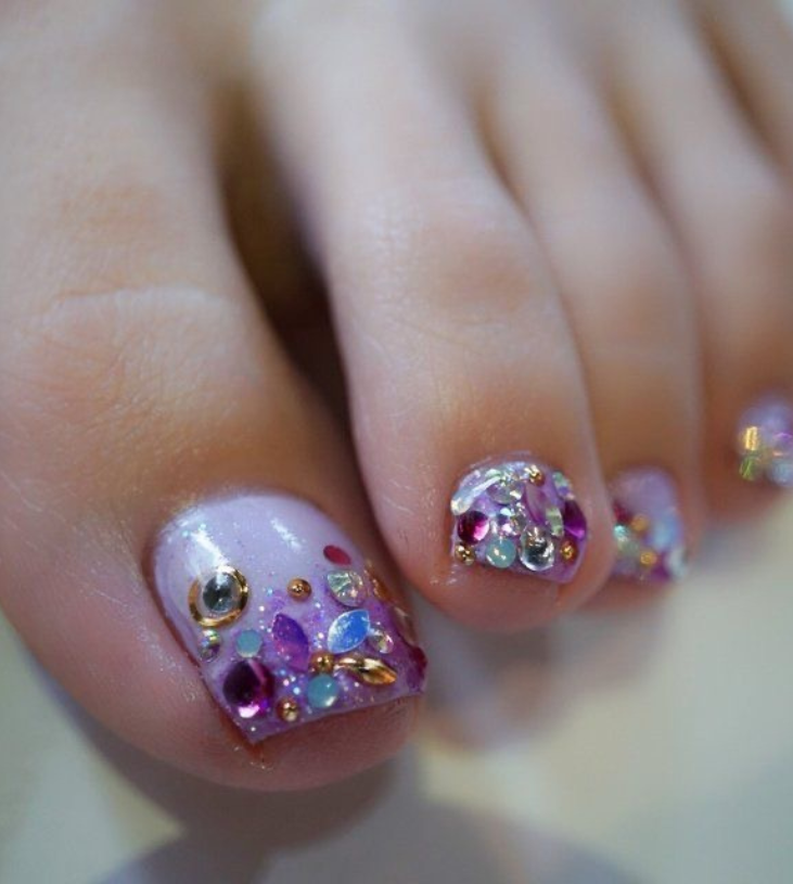 Pink is the base on which the fun royal look of these rhinestones is. The quirky and multicolored accents are the vibrancy of the carnival. Every toe is a beautiful gemstone that is decorated with glitter and sparkling, which is absolutely stunning for the lady who prefers to wear her crown with a slight smile and a wink.