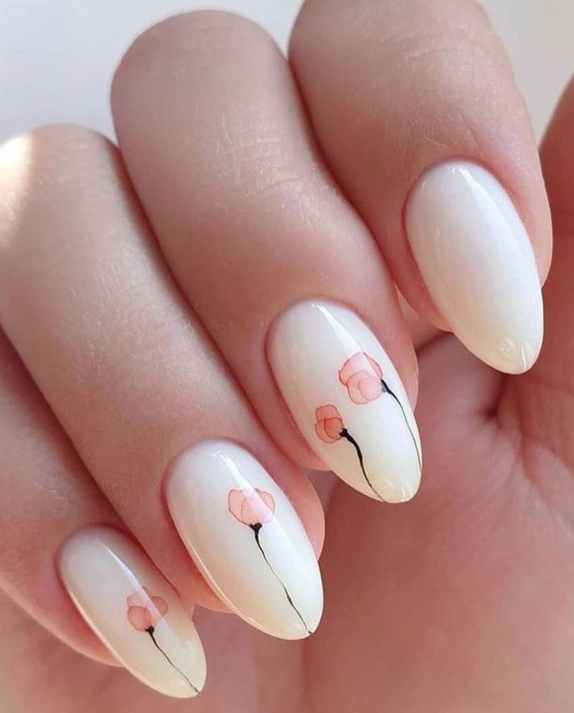 The short almond nails that are ideal for the minimalist dramers are the ones that have a bright white base with a touch of neon lime. The black and white leaves make it look classy, so you can wear this at both the office and the rooftop bar during your evening out. To the idea of minimalism, ’less is more’ it suggests but still, it is bright enough to keep the talk going on.Samantha: