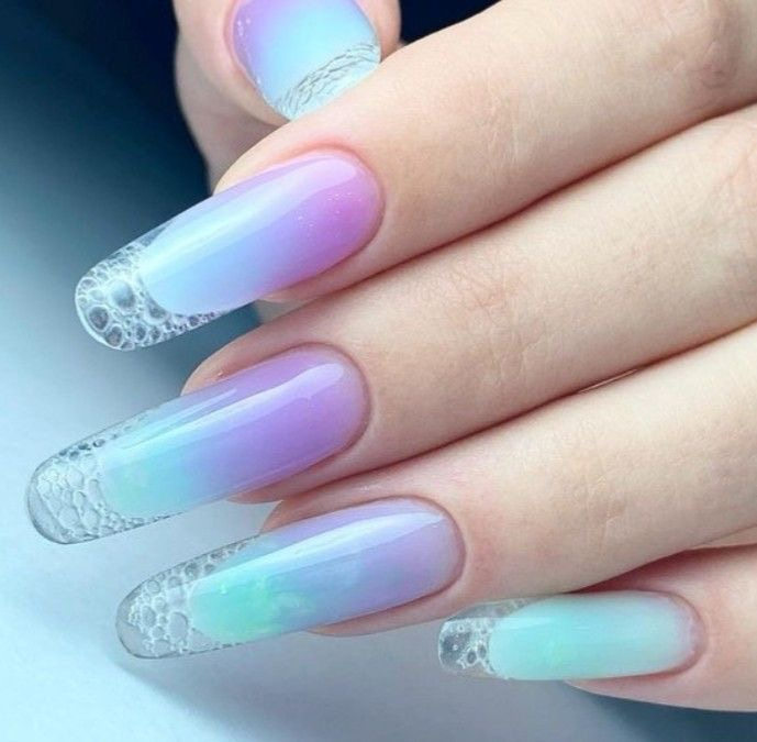 Attractive purple and light green turns into a divine pastel ombre, which is fantastic for the ladies who like it short and easy yet elegant. The “Pastel” model is like a fairy in a fabulous dress; it can be worn to a spring brunch or a visit to the art gallery. The light transition from pink to periwinkle denotes a gentleness that fits with the voluminous and floral dresses, and the water-clear tips with soft white elements are like dew drops on a petal – a just right touch to make any outfit lovely.