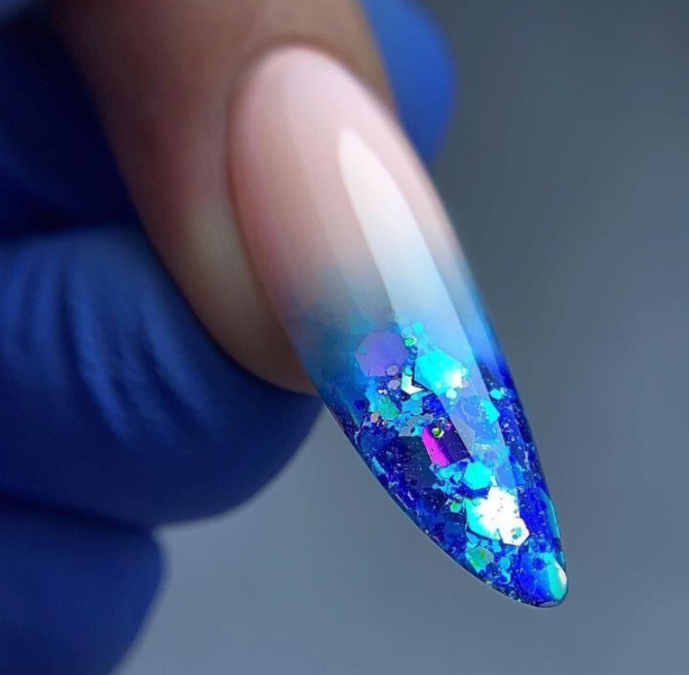Nails that are made to blend the clear simplicity with a galaxy of blue and silver sparkles literally take you to the cosmos. These long, pointed statements alone are enough to be the stars of the night sky and the nebulae. The glitter of the various blue tones is the same with the feeling you get from a sky full of stars, which makes it a perfect embellishment to any outfit. It&39;s a design that is especially suitable for an evening event, where you can wear a black sleek jumpsuit with silver accessories to celebrate the cosmic dance.