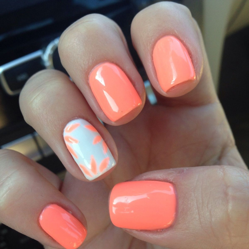 If you are a freak of shine, then the nails with glitter coral are completely what you need. Dazzling glitter overlays are used on pink and peach base colors turned the nails into a shining glory. The exciting use of glitter as a design element adds a glitzy twist to the manicure and makes it the best choice to wear at summer parties or while you are out in the sun.