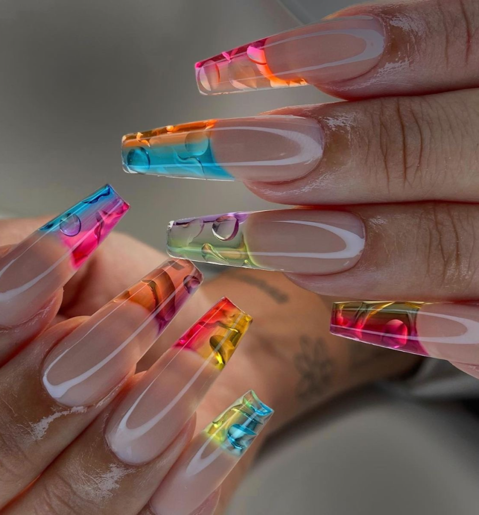 These nails are a bright, funky way to display your summer mood. The transition from a pale white to a dazzling neon tip is both daring and exquisite as a symbol of the white long summer and summer red sunsets. They are ideal for the birthday girl who seeks attention and to be regarded as a fun and lively person.