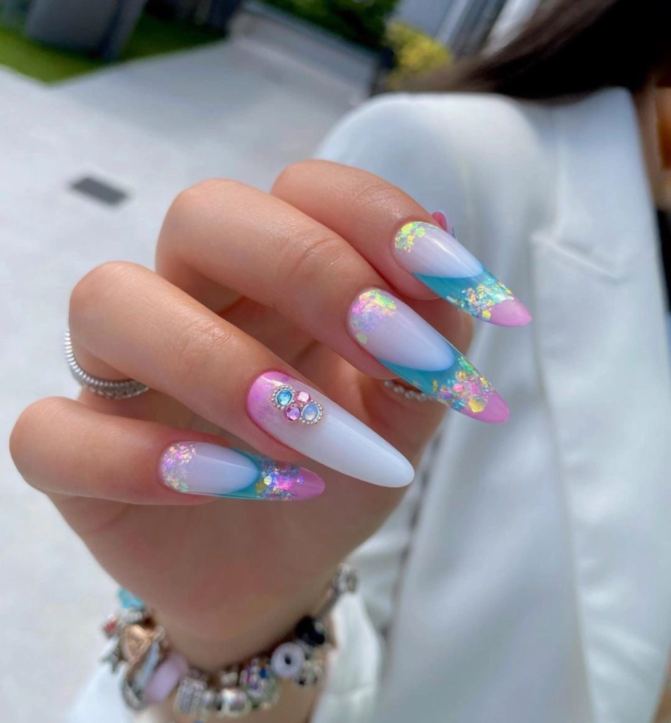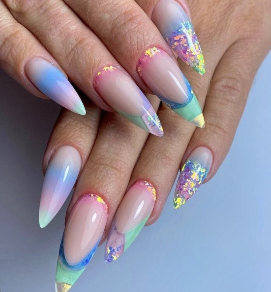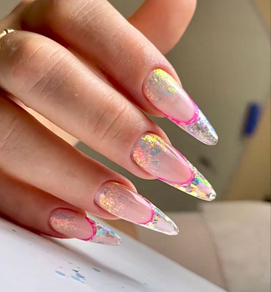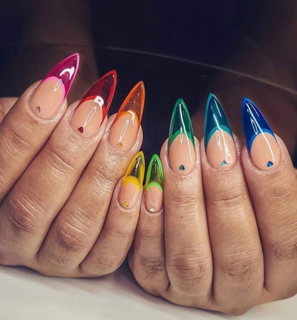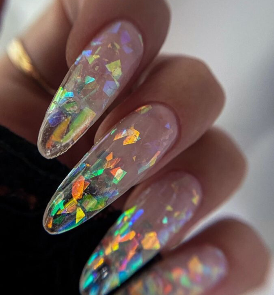 Iridescent tipped is the best nails today; they are like a daydream made real. Their length and cuteness combined with a special shine seem to attract not only the light but also the mind. Perfect for a funky birthday party or a cozy dinner with your best friends.