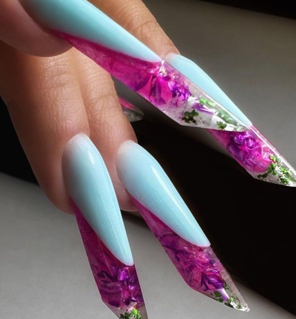 If you are able to ponder the natural beauty found in this amazing planet, then these nails are the one for you. Made of transparent acrylic mainly for a spectacular view of the vegetable materials surrounded by the colors of nature. The length of these nails is sophisticated but not so much as to look strange-a balanced measure of things-earthy and light at the same time for a birthday.