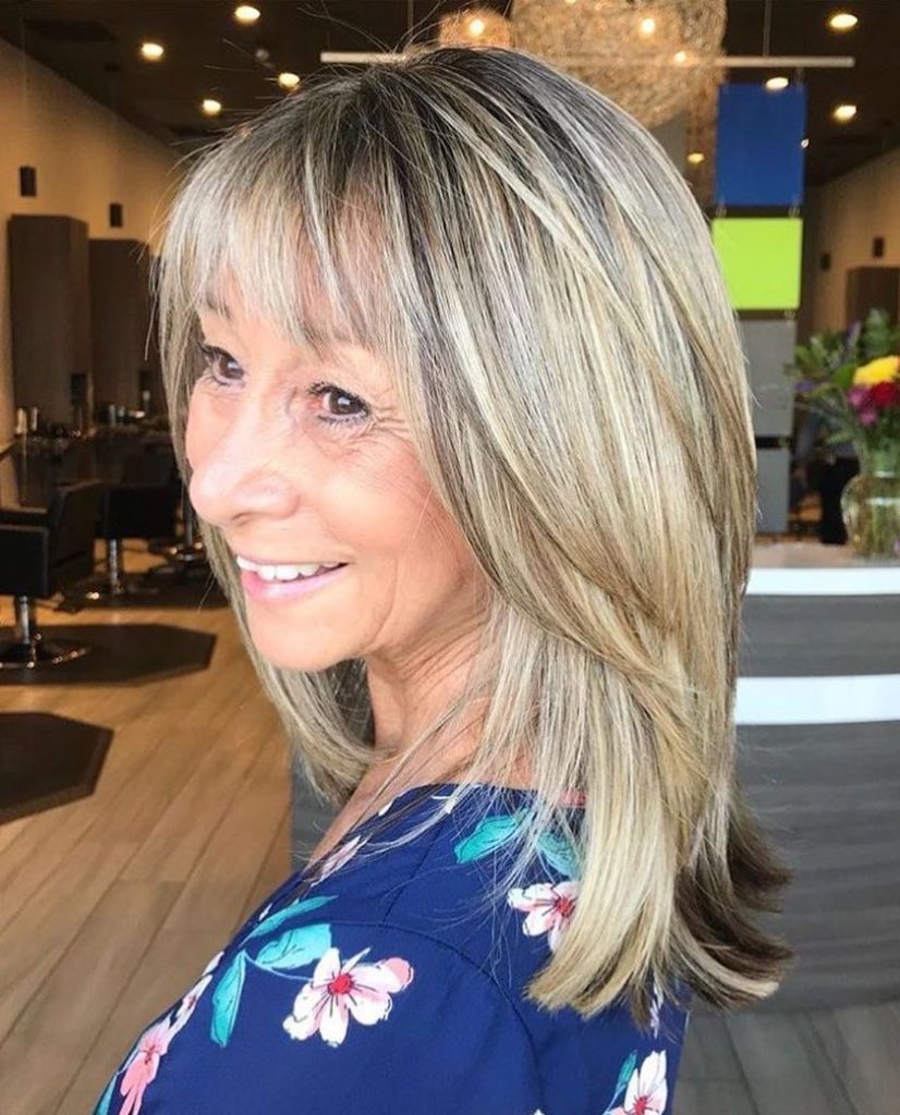Shoulder-length haircuts are the new trend for many female over 50 looking for some flexibility. The feathered bangs give a warm touch to the look, while the tousled layers bring the playful aspect which is both fashion and age-appropriate. It is a great hairstyle for women with medium to shoulder-length hair, as it shapes the face beautifully and brings attention to the eyes and cheekbones. In addition, the feathered bangs are so light that they won’t outweigh the face, which makes this style one of the best options for the people who want to be natural in 2024.