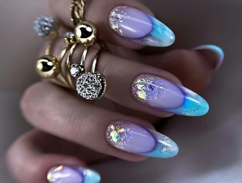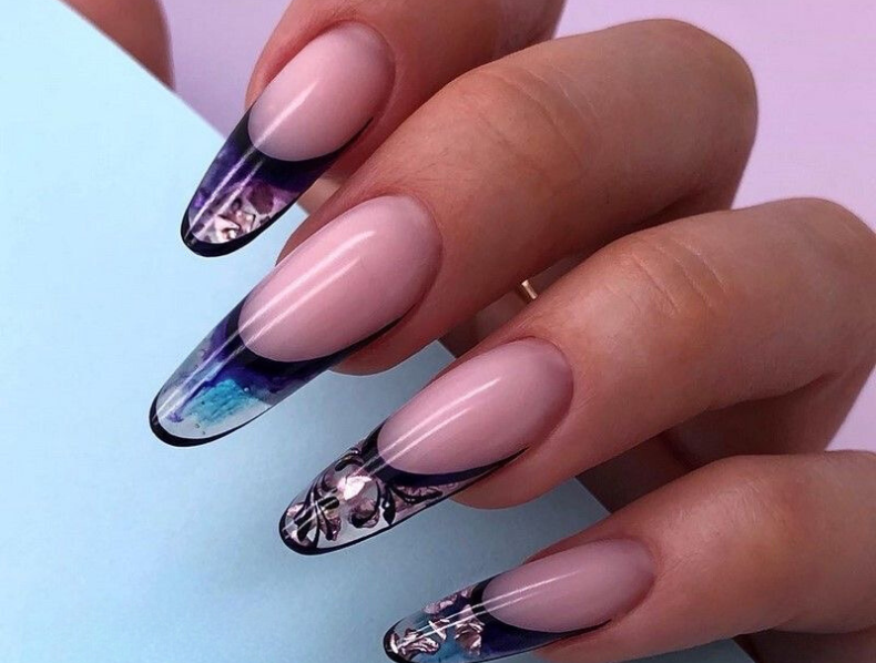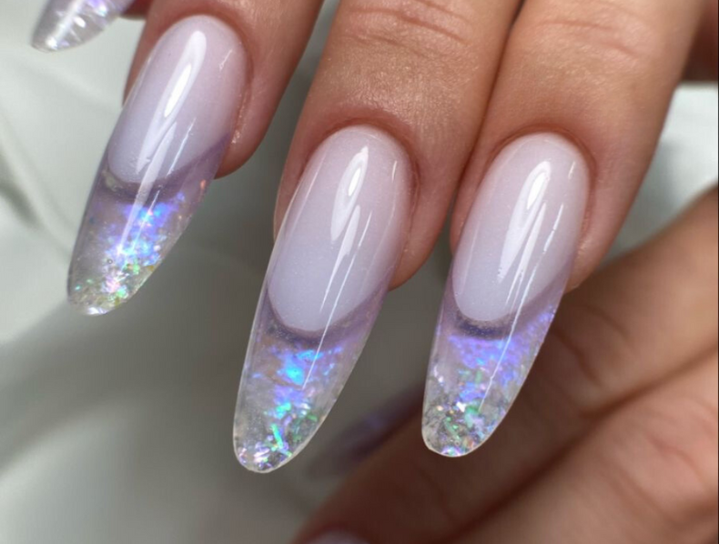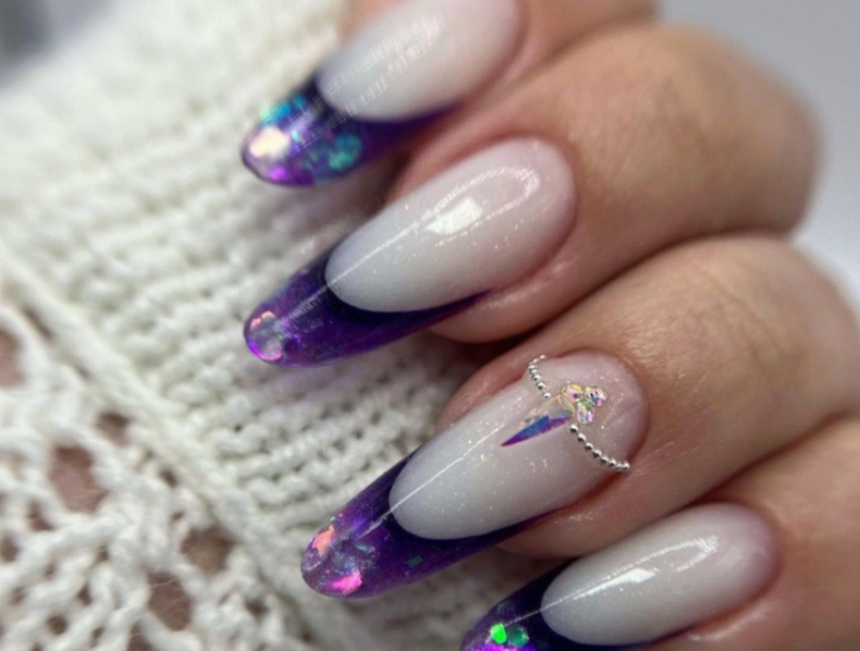This holographic wonder that glimmers in a range of colors against a lilac background is like having the future at your disposal. This design is a clever modern version of the classic French tip, with pieces of reflective material that demonstrate a trendy edge. This is the perfect option for the high-tech woman who has the confidence to move in the urban jungle.