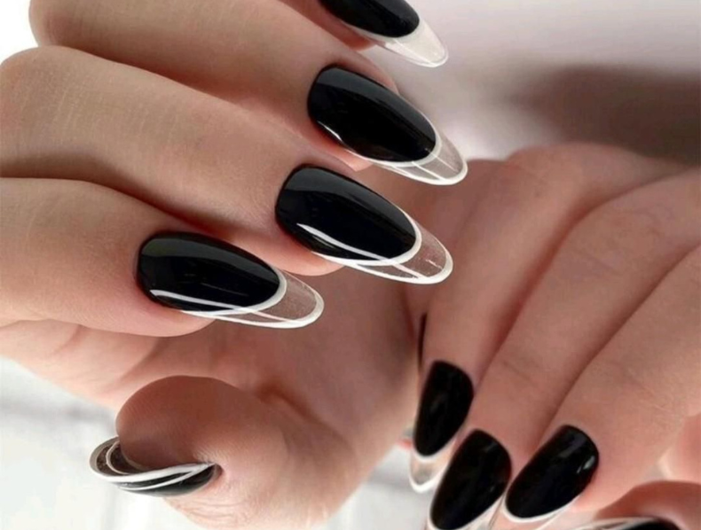 Black and white spiral nails are the ideal embodiment of contrast. The curvy lines is a modern interpretation of the traditional French tip that, according to the very essence of contemporary art, is. This finish goes to those who are in the mind of harmonious presence of yin and yang, who are not afraid to speak with powerful messages while being totally silent.