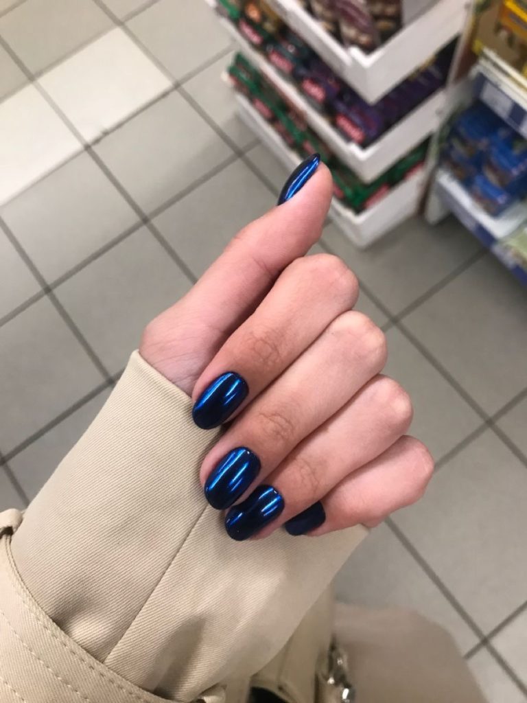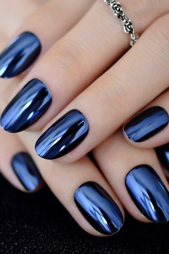 For individuals who are inclined towards the enigma of the dark sky, these navy nails with an electric chrome finish are the pinnacle of midnight thinking. The interplay of light on the surface gives rise to an optical illusion that is not dissimilar to the infinite navy sky above thus that they are perfect both for artistic and design approaches to winter nights.