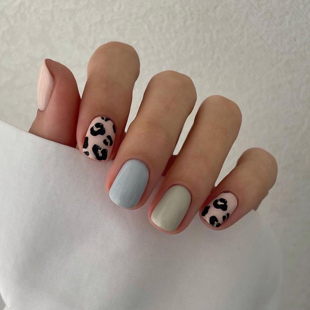 Footage of animals is forever in trend, and if you do it on the nails, that would be the coolest way of making a statement. Combining the classic leopards` print with soft pastel colors, this design is both elegant and a bit risky, which is the ideal choice for a woman who is self-confident and has a good taste.