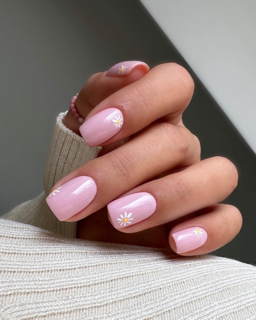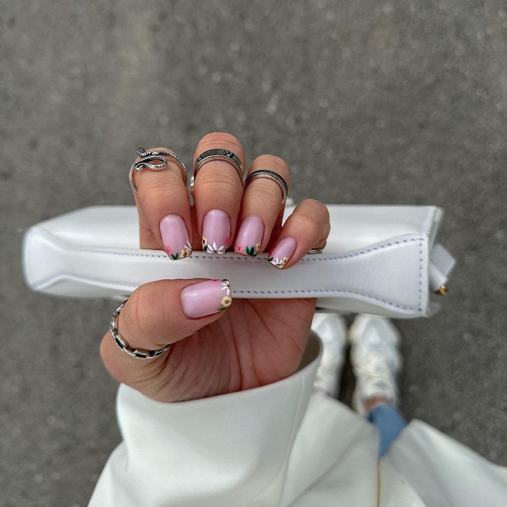 This cute design combines the simplicity with the sophistication of a blush pink base and white line art. It’s a simple yet effective approach for the nail art to wear the spring trends of 2024, integrated with any spring wardrobe.