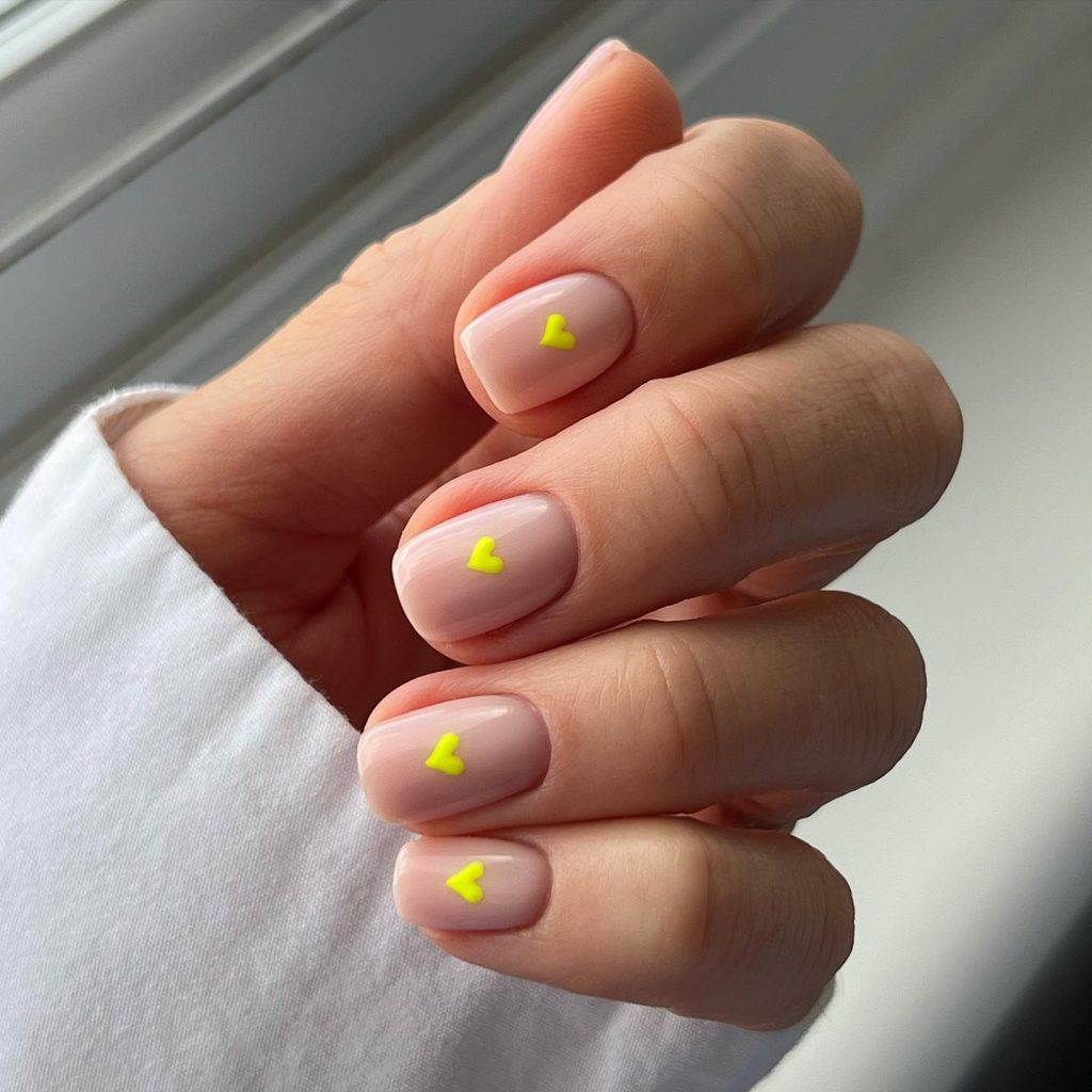 Think of a pale pink with a hint of lemon yellow—that’s the only thing you need to show the idea of raw summer joy color palette. The little square nails completely demonstrate the term cute and classy; only besides the single yellow heart on each nail can you see what summer love is like. Would it not be great to wear this nail art design to a casual brunch near the beach, or to a road trip taken off the cuff, as an acknowledgment of the happy-go-lucky side of summer?