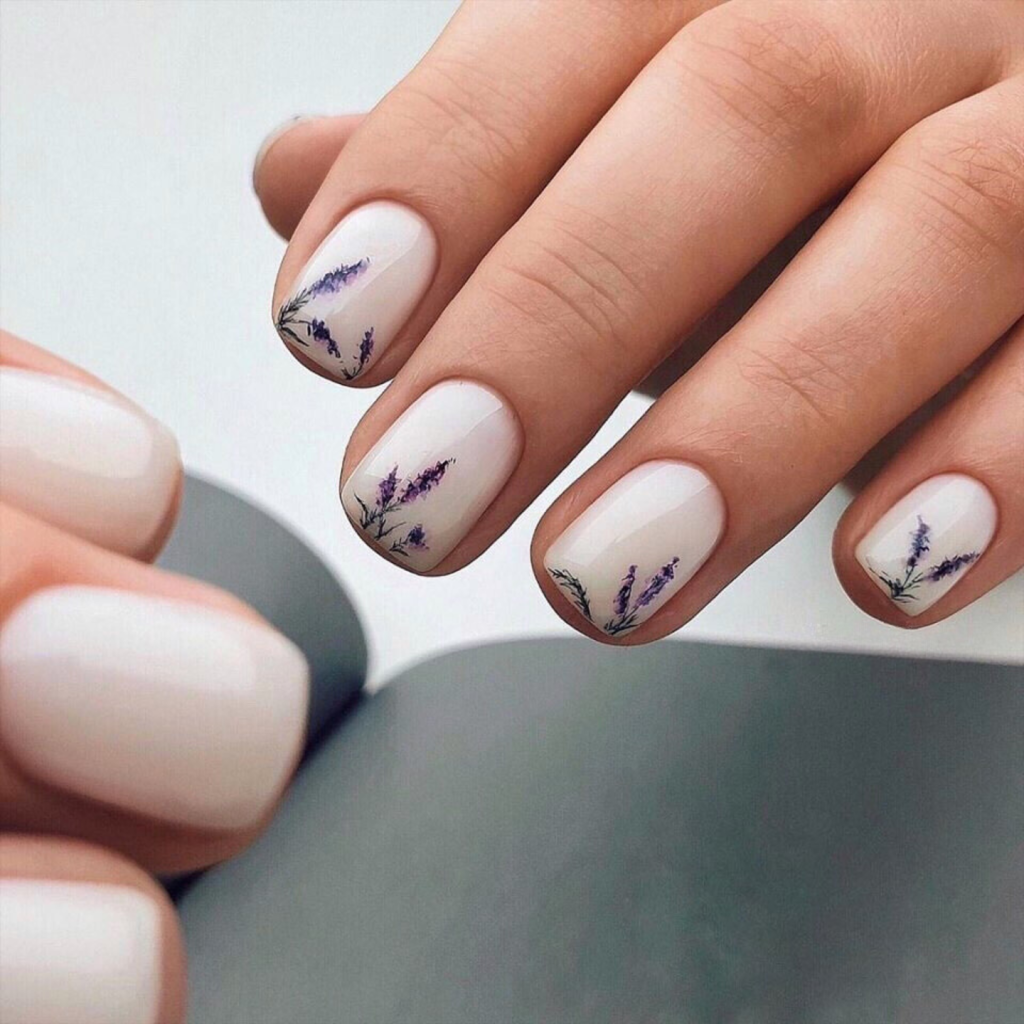 The exemplary portrayal of lavender blossoms emanating the fine detail on a simple white backdrop proves the delicate beauty of the flowers. The summer day ambiance these nails are giving off, which you have spent lying on the lush green grass in a rural area, is so beautiful and these are the nails that are giving you a glimpse of nature’s beauty on your fingertips.
