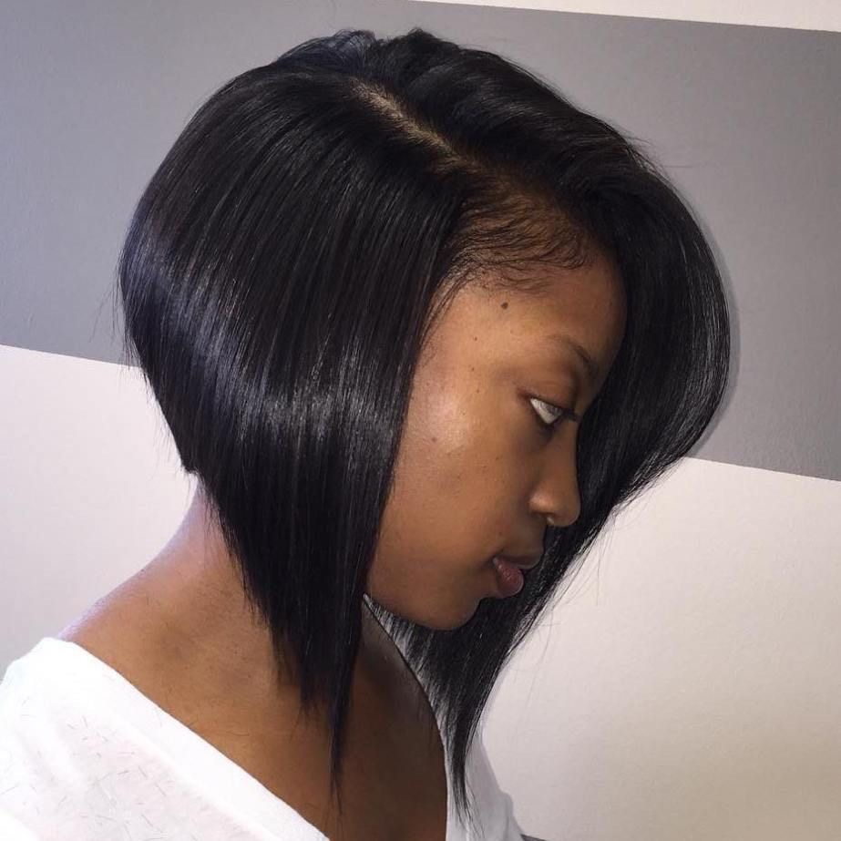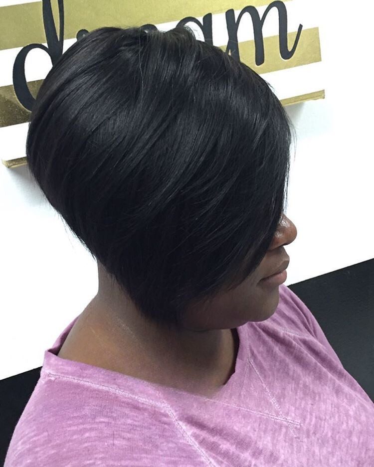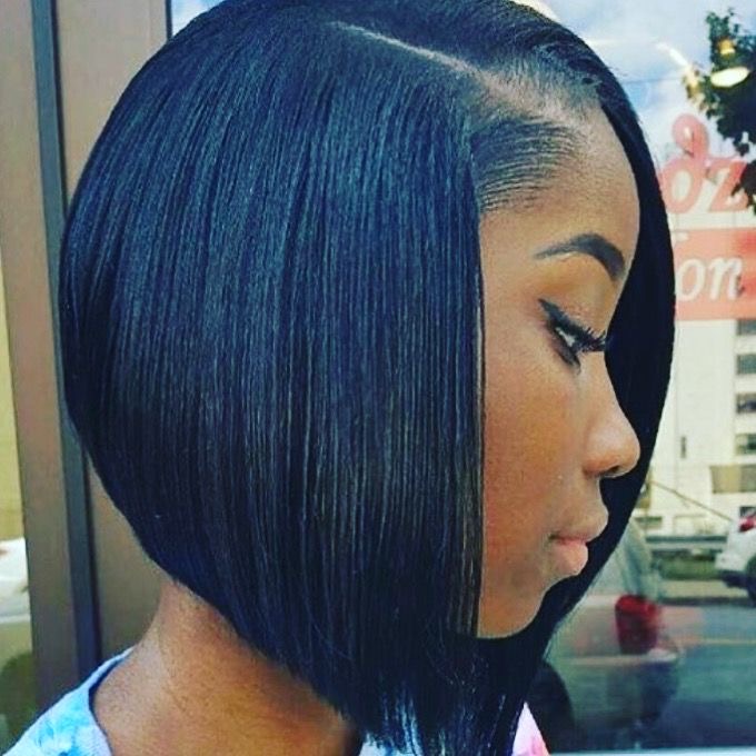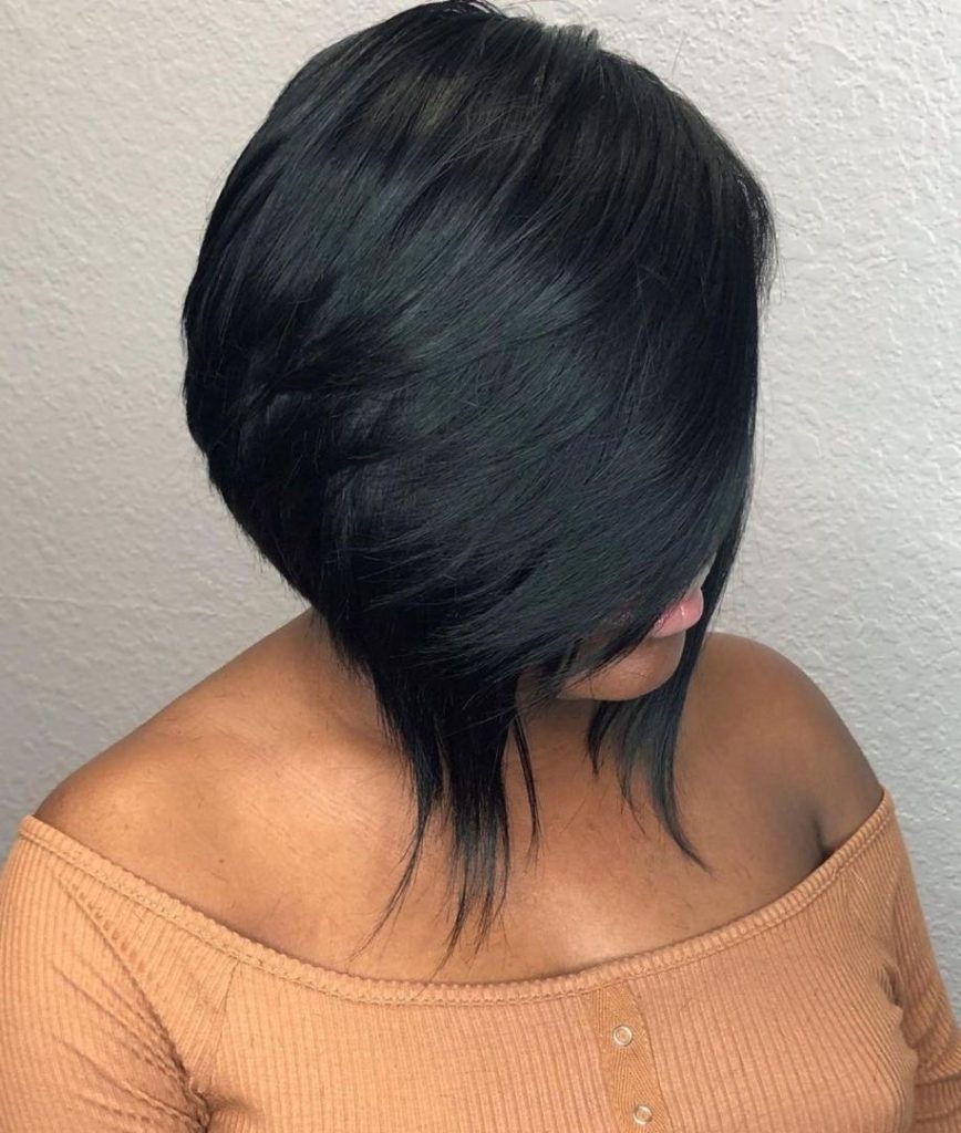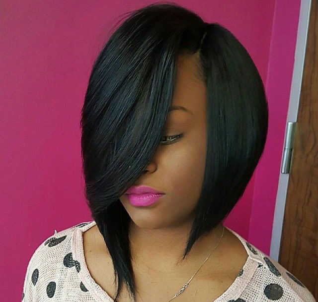 This amazing hairstyle is swoopy bob which is the perfect length and has a diagonal shape with a full fringe that diverts the attention of the viewer to one side of the face of the model. The very hairstyle looks like the hairs that are falling in a straight union with the hair’s union of the natural deep color of the hair which is a testament to the rich quality of the hair. The picture of this hairstyle can attract a bold lady who loves drama.