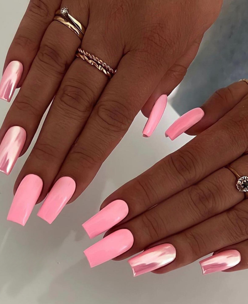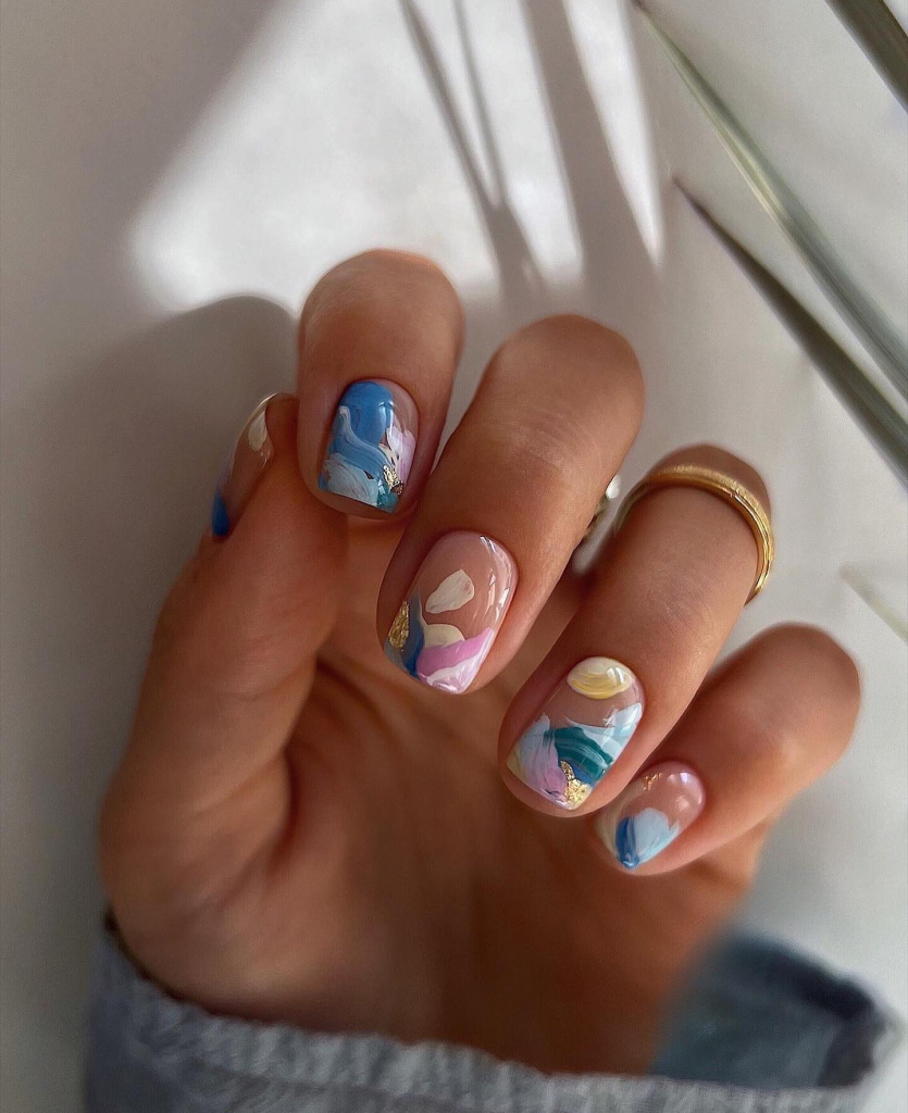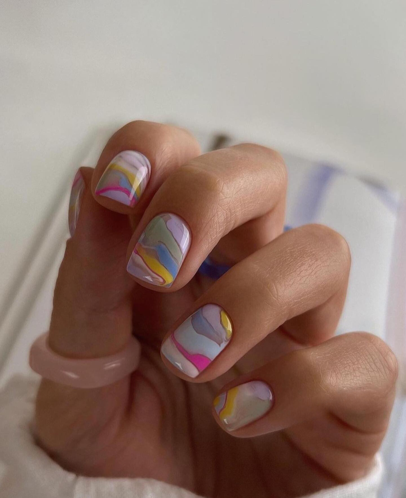 For example, for the ones who like little hints of the season, these pink marbled nails are the answer. The mingled white and pink colors form a delicate and fashionable look resembling the summer sky; thus, it can be interpreted as soft and cloudy.