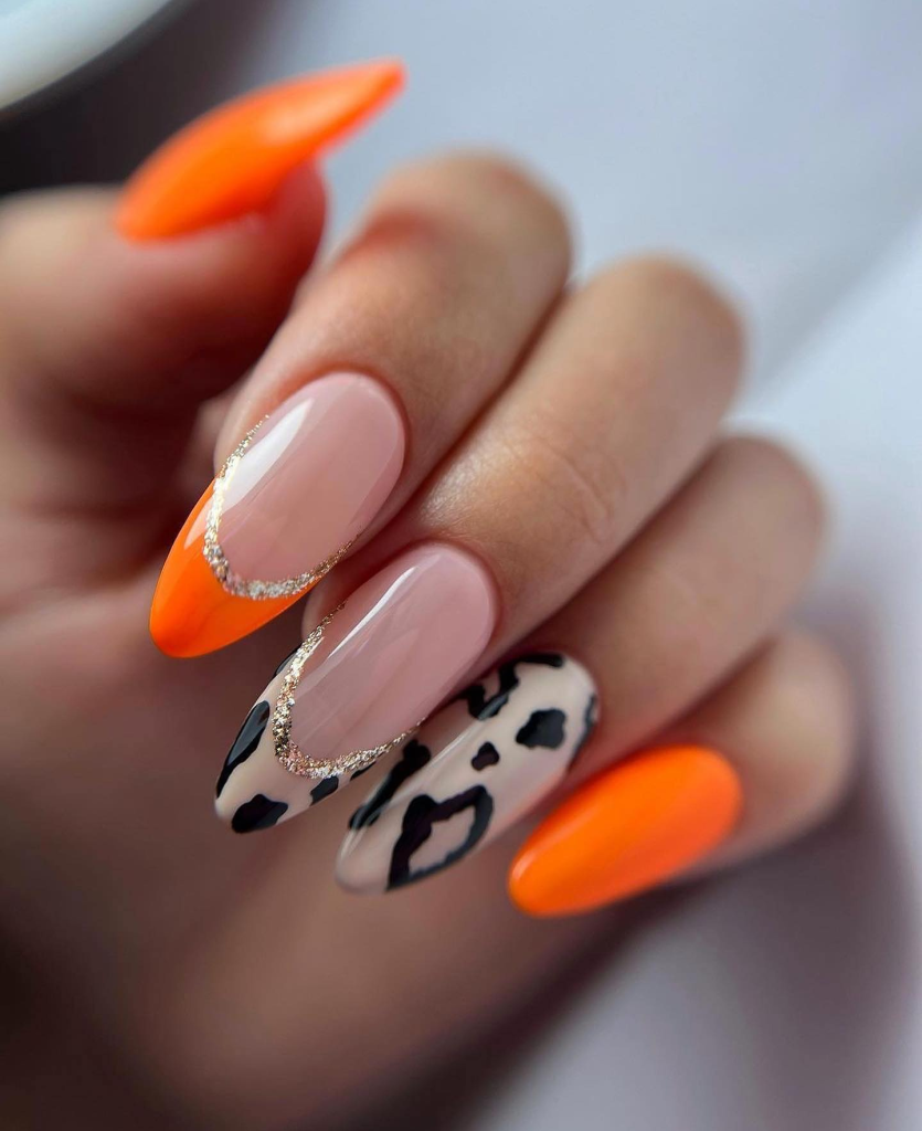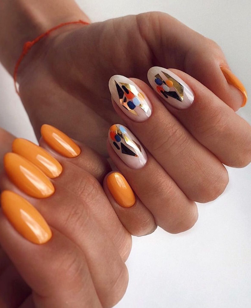 We all know that the heat and the sun cannot bring anything but the carefree spirit, but who says summer is not the time for experimenting with the shades? This edgy summer design is all black with a bright orange hit, giving the feel of a rockstar and a punk. It is for all those who wish to make eye-catching.