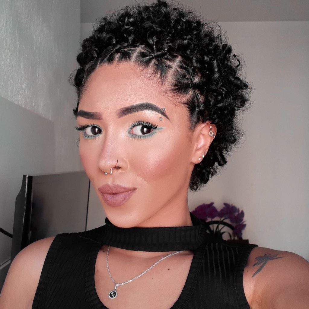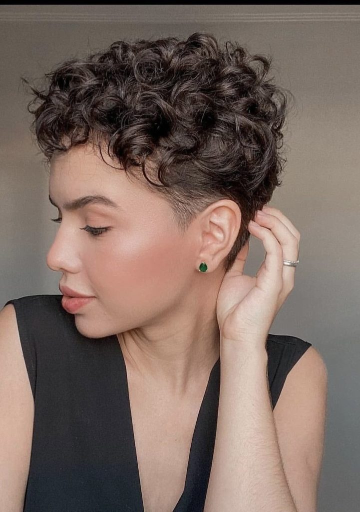 The tapered cut hairstyle with a curly crown is a new chic, modern style that speaks of power. The back and sides are kept short and neat, thus the top curls can reach the top. This style is particularly suitable for black-haired girls as it emphasizes the dark color and the structure of the curls. It’s an ideal choice for those who want a natural pixie cut at the same time want to have a simple, yet, very stylish look.
