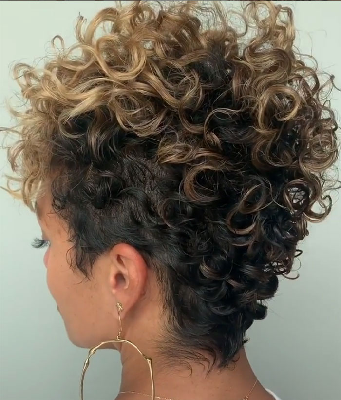 A curly mohawk is a bold and elegant hairstyle that demonstrates the beauty of the natural curls with a modern twist. The sides are cut short while the top curls are left longer and styled to get the volume and effect they want. It is a look for the women who are brave enough to go outside the box and try different hairstyles. It is an excellent option for African American women who wish to openly embrace their hair type in a mighty way. The pixie cut style which is the main inspiration of this hairstyle makes it a universal and appropriate choice for different occasions, from hanging out in casual clothes to attending events in chic dresses.
