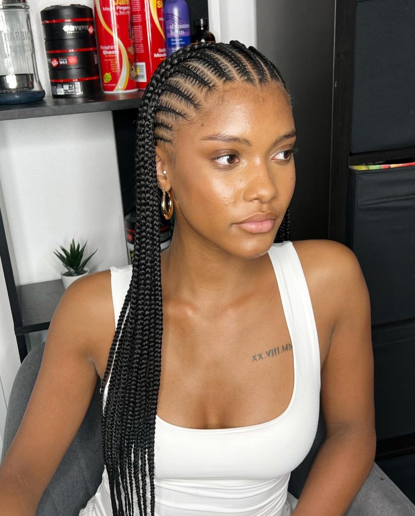 The straight-back cornrow is a traditional hairstyle that has really remained timeless over the years. In this particular picture, the cornrows are so expertly done that they exude a sleek, stripline image that is both minimalistic and very classy. It is a multipurpose fashion that one could wear without putting much effort and is appropriate for anyone, at any time in their life.