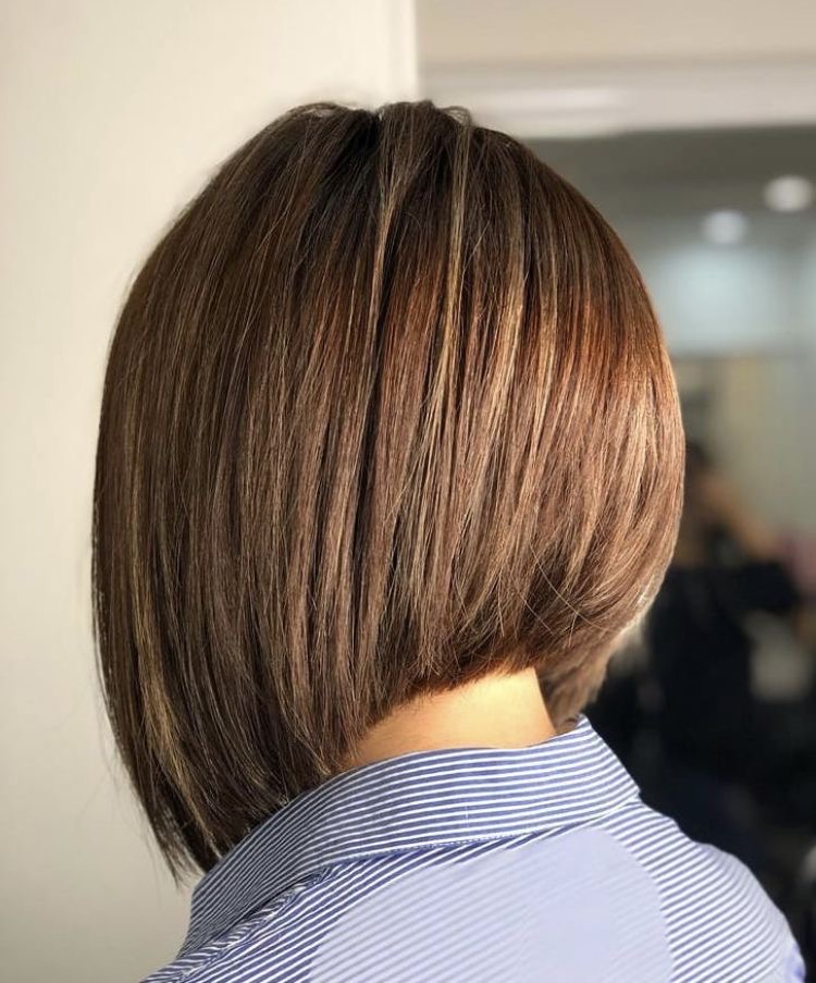 The distinctive feature of this bob is its simplicity. It offers a classic style that combines short and long lengths in a very restful way and that can be worn in an official or playful way. This haircut is the most suitable option for women who are 40 and 50 years old + and who adore the neat yet uncomplicated style of the short bob which also has the length to style in a different way if needed.