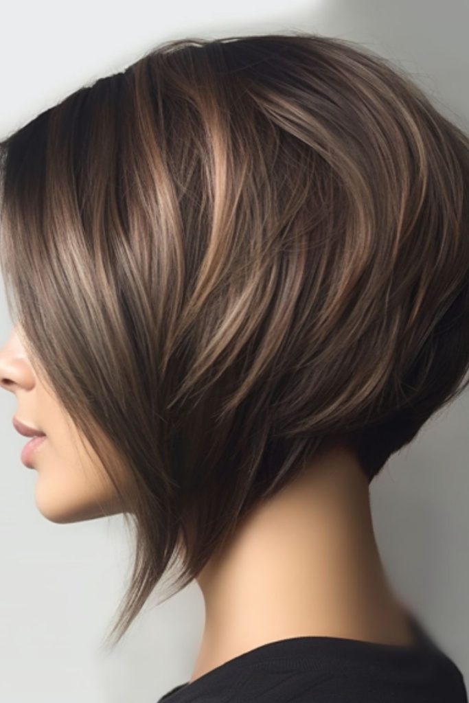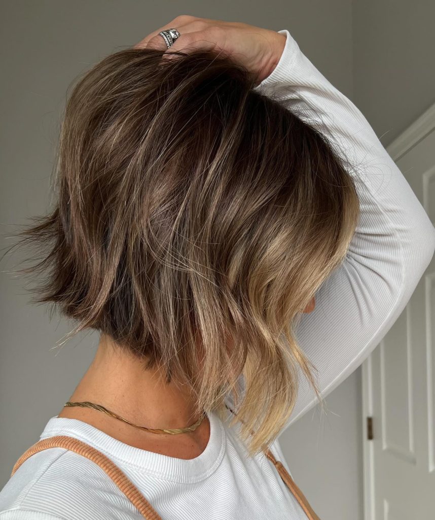 This bob haircut is a breath of fresh air; it is the balayage technique where light and dark tones blend together for a naturally sconced sun look. By the back being short and the front being long, both parts work purposefully to assemble a design that is both playful and stern, thus, it altogether is a perfect choice for a lady over fifty who wants her outfit to be understated and amusing.