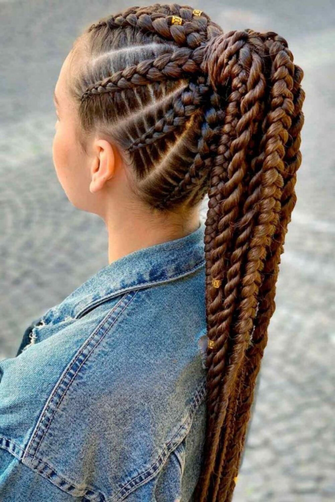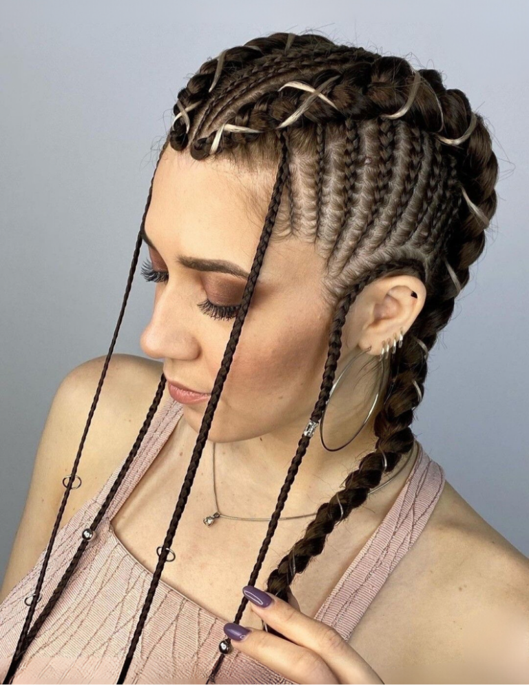 Here, braids serve as an artistic expression, with the hair becoming a canvas for intricate patterns and designs. This style highlights the meticulous craftsmanship of braiding, turning the head into a masterpiece of plaited art. It’s a head-turning style that fits seamlessly into the gallery of 2024’s trendiest looks, appealing to the creative spirit of women of all ages.