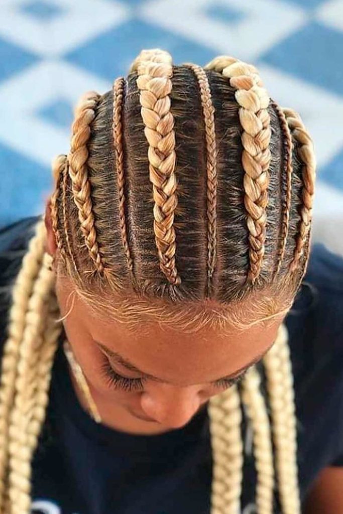 Cornrows are a timeless classic, and this style brings them into 2024 with a fresh perspective. These cornrows feature a mix of thin and thick braids, creating a textural contrast that’s both visually appealing and touchably dynamic. This hairstyle is not only easy and quick to maintain but also exudes a sense of cute confidence. It’s ideal for women with short hair or those over 50 who want to embrace their natural beauty with a nod to their cultural roots.
