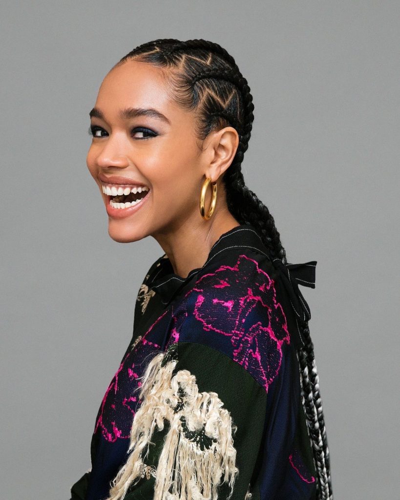 Here, the cornrows take on a new dimension, blending street style cool with high-fashion sophistication. The braids, arranged in a neat and bold pattern, are a testament to the adaptability of African-inspired hairstyles. It’s a style that transcends age, being as relevant for those in their 40s as for the bold spirits over 50. It’s an easy, quick choice that adds a touch of urban chic to any look.