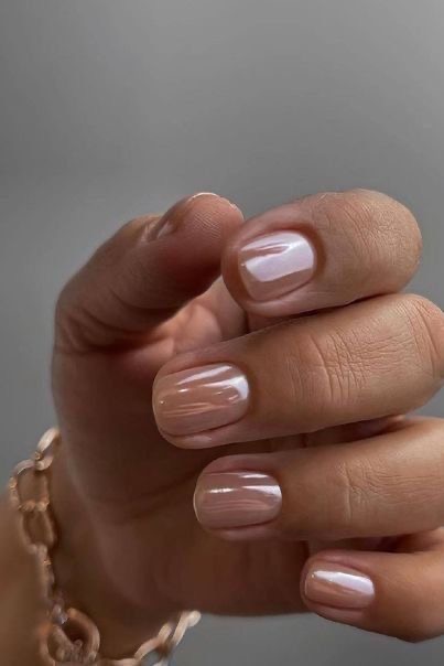 The soft sophistication of a nude chrome polish on a short square nail is a very classy effect. A simple shape like this reflective surface is a perfect match for everyday elegance. A simple shape is reflective surface.Such a manicure is the best way to show the everlasting charm of minimalism. .