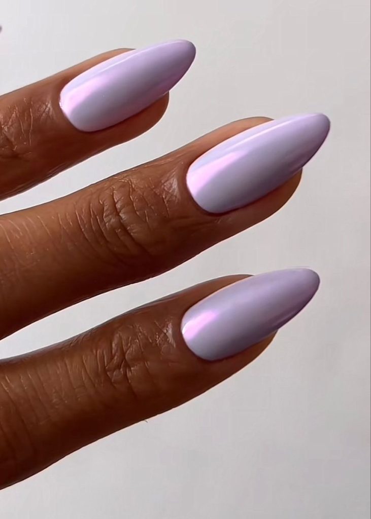These almond-shaped nails are indeed exceptional and are covered with soft lavender. They are practically casual style with hints of color. The barely visible shade is good for a peaceful day, while it is still captivating enough to speak out in their own way. They are the best friends to classic white sneakers, thus, they show that the style can be easily achieved.