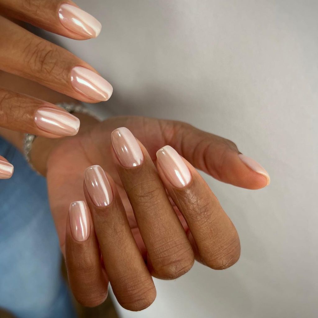 Pastel pink chrome nails are soft and give off a faint light that ensures their brightness. It is a choice for a romantic person that adds a soft dreamy feeling which is both sweet and chic.