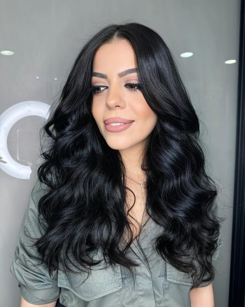 This is a look for women who want to be distinct. This long hairstyle with a soft touch of wavy hair plus a black hue is the style of the day for such a bold and commanding girl. The hairstyle is a perfect and striking choice for a woman who is in her 30s or 40s and is looking to add a little drama and elegance to her appearance.