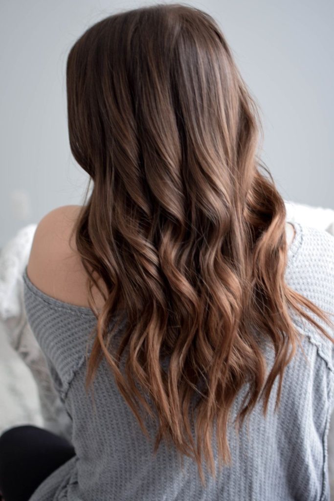 This way of styling highlights the beauty of the long hair with the plethora of waves that shine like a golden brown. The hair descends below the shoulders, thus making a beautiful frame for the face. The specific style, which looks so elegant, can also be adapted very easily for a formal event or a casual day out.
